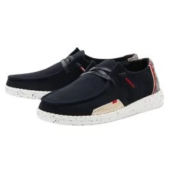 Classic moccasin construction in performance materials. The Wally ADV collection showcases a travel-ready moc, made with stretch nylon uppers that repels water and is flexible enough to fold for packing. Reinforced heel for stability, mesh lining throughout, and insole to keep things fresh. Featuring our thoughtfully designed Easy-On System with no-tie elastic laces and an ultralight outsole. Bring on any day with these dudes.