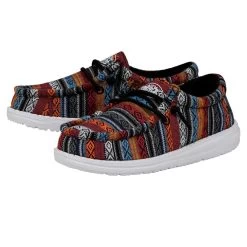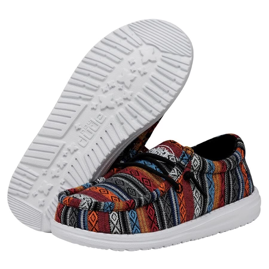 Created for early adventures on scenic trails for imaginations that run wild and free. The Wally Youth Serape takes on our classic Wally Toddler with a touch of inspiration from the iconic serape shawl. Featuring a durable woven fabric that’s more durable than cotton but still breathable enough to keep their little feet cool throughout. Finished off on an ultralight outsole with no-tie, elastic laces and a cushioned ankle collar for trails that are never meant to end.Â