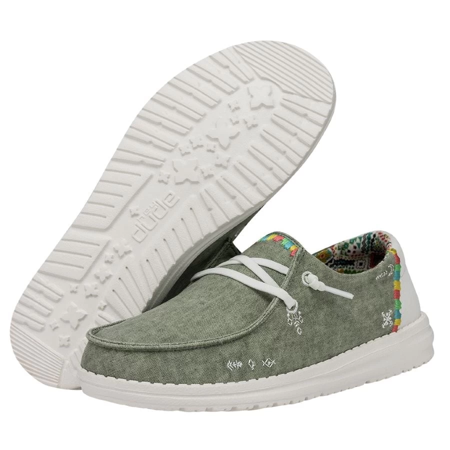 Our most iconic moc meets lightly washed materials and boho-chic inspired, hand-stitched details that come together for a customized look. The Wendy Boho collection features a breathable, cotton-blend upper and lined with the same materials for all day festivities. Finished off on an ultralight outsole and our easy-on system with no-tie cotton laces to keep the comfort going all day long. So festival ready.Â