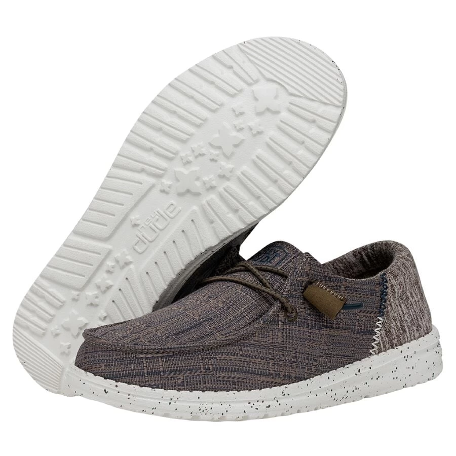 Shake up your essentials with the slipper-like comfort of the Wendy Funk Slub Blanket collection. AÂ HEYDUDEÂ classic with a patterned heel detail for extra funk in every step. A woven, polyester-blend upper comes together, lined with a breathable cotton lining for strides that can’t be stopped. Finished off with an lightweight foam outsole that keeps the spring in your step. If we’re making blanket statements: this shoe is festiva-legit.Â