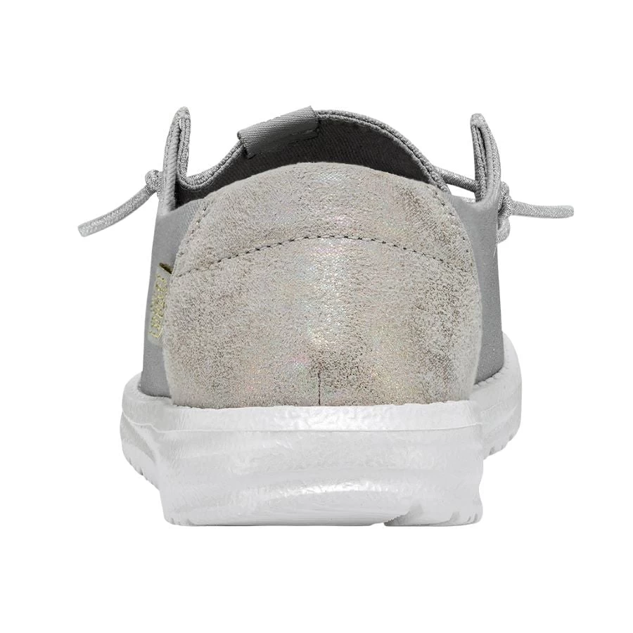 Time to smile for the camera with the sparkling Wendy Glitter collection! Featuring a durable, metallic textile upper in front of a fun glittery heel, and shines with an extra layer of foot-hugging foam. Lined with a light cotton-blend lining for lustrous strides. Finished off on an ultralight outsole with our easy-on, elastic lacing system. You’ve got one red-carpet ready shoe.