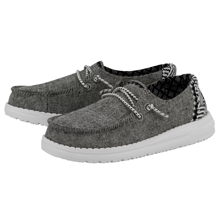 Perfect for all her daily adventures, The Wendy Youth Chambray collection introducesĀ our iconicĀ low-top moc for her. A soft, breathable, chambray-blend canvas, finished off on an ultralight outsole with elasticĀ laces that keep these ‘lil dudes securely on.Ā The low-topĀ slip-on style is both cute and functional, making getting ’em dressed easy & quick!Ā