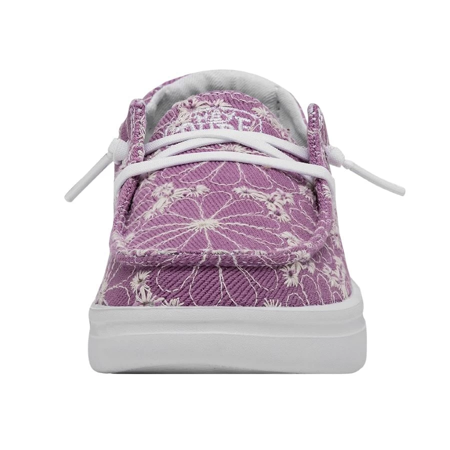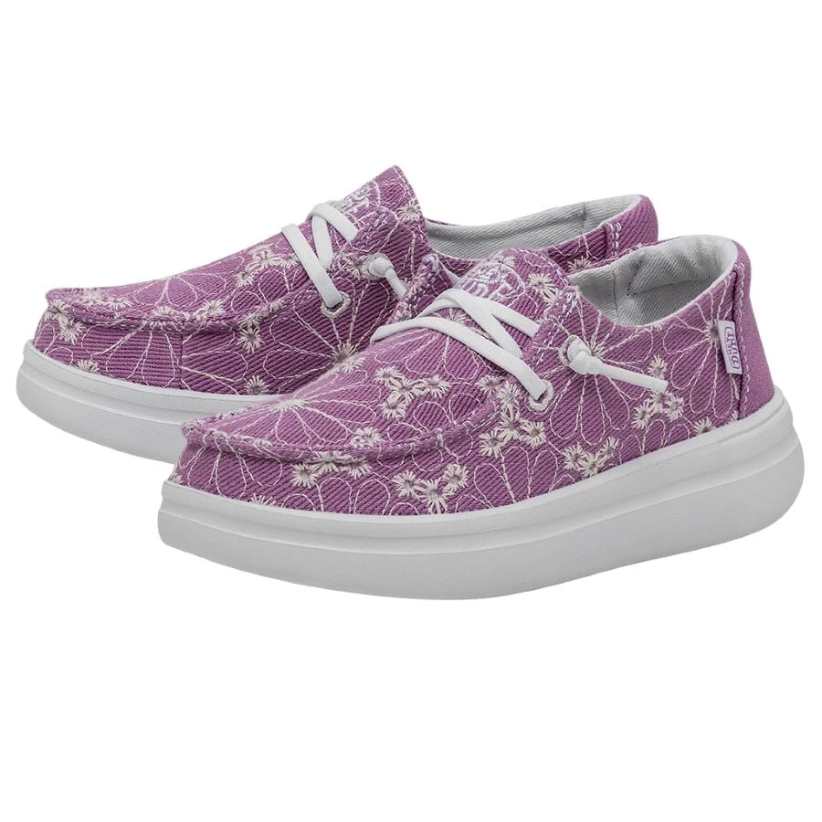 Introducing the Wendy Youth Rise Eyelet collection, created for fun with new heights. Created with a breathable, poly-woven upper that comes together with a soft cotton lining and our signature, extra-cushy insole to keep her feet happy. The elevated, tried-and-true outsole lets her skip, jump and stroll without a care. Like rose-colored glasses, for her heart and sole.